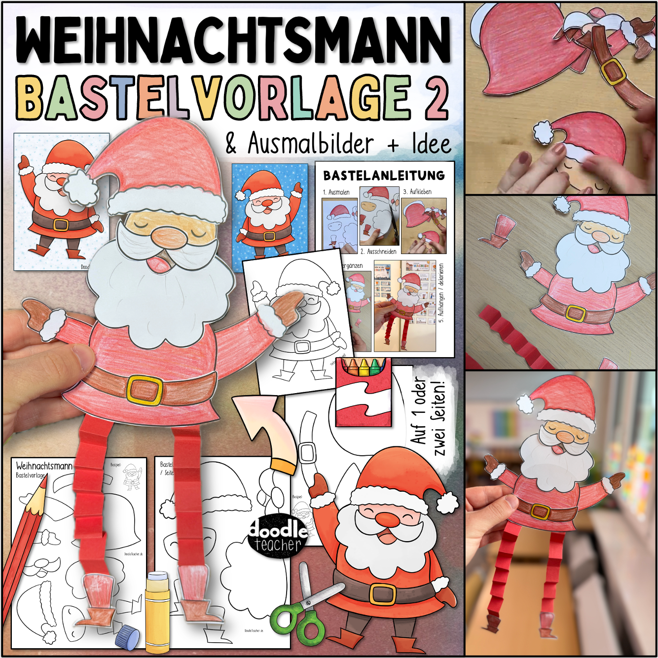 Weihnachtsmann und Wackelbeine 🎅✨ Bastelvorlage & Ausmalbilder