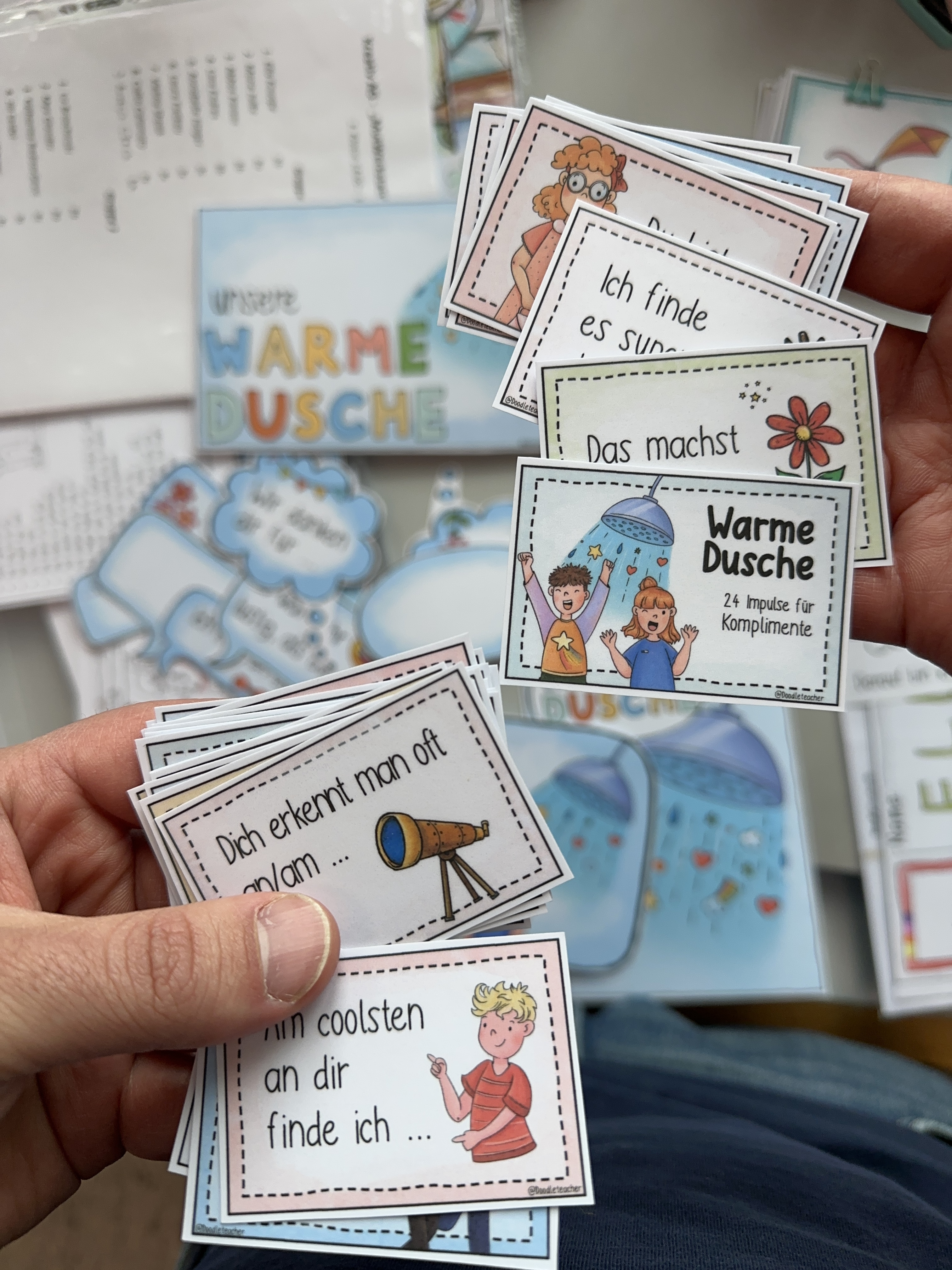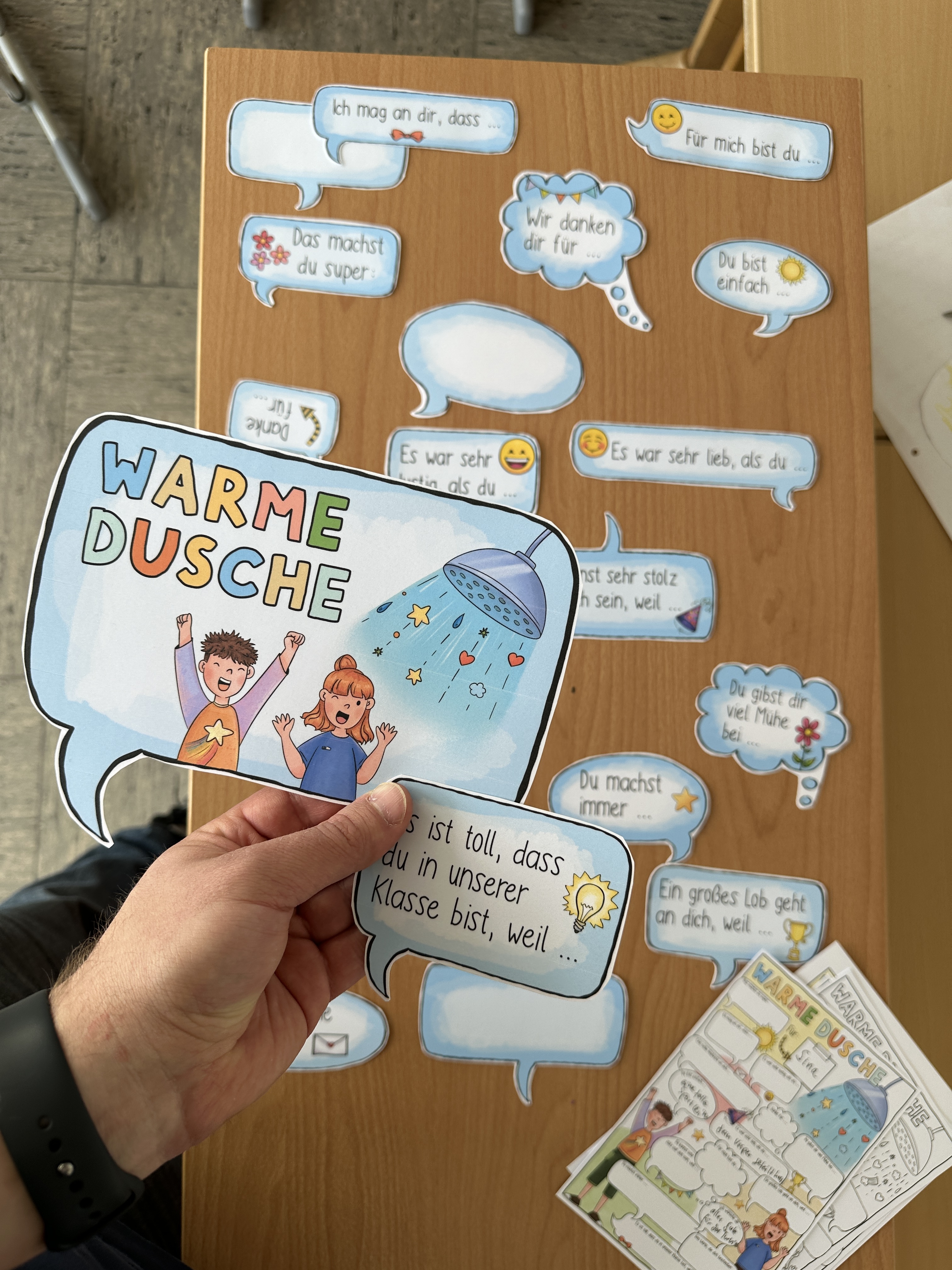 Die „Warme Dusche“ ist ein bewährtes Ritual aus dem Bereich des sozialen Lernens und des wertschätzenden Classroom Managements. Sie fördert eine positive Lernatmosphäre, stärkt Beziehungen innerhalb der Klasse und unterstützt den Aufbau einer respektvollen Gesprächskultur.