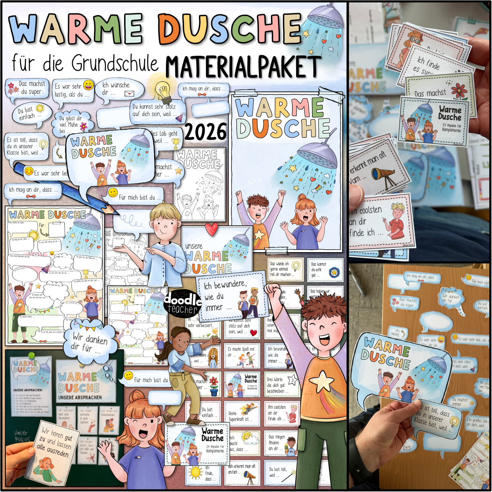 Die „Warme Dusche“ ist ein wertschätzendes Ritual, das den sozialen Zusammenhalt stärkt und den Blick der Schüler*innen auf positive Eigenschaften und Handlungen lenkt. Mit diesem Materialpaket wird das Ritual schrittweise eingeführt, sprachlich begleitet und visuell unterstützt. Die Materialien sind so aufgebaut, dass sie flexibel im Unterricht, im Klassenrat oder zu besonderen Anlässen eingesetzt werden können.